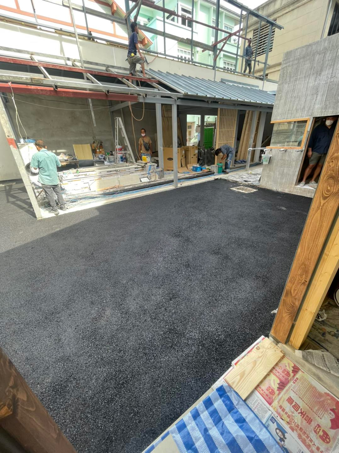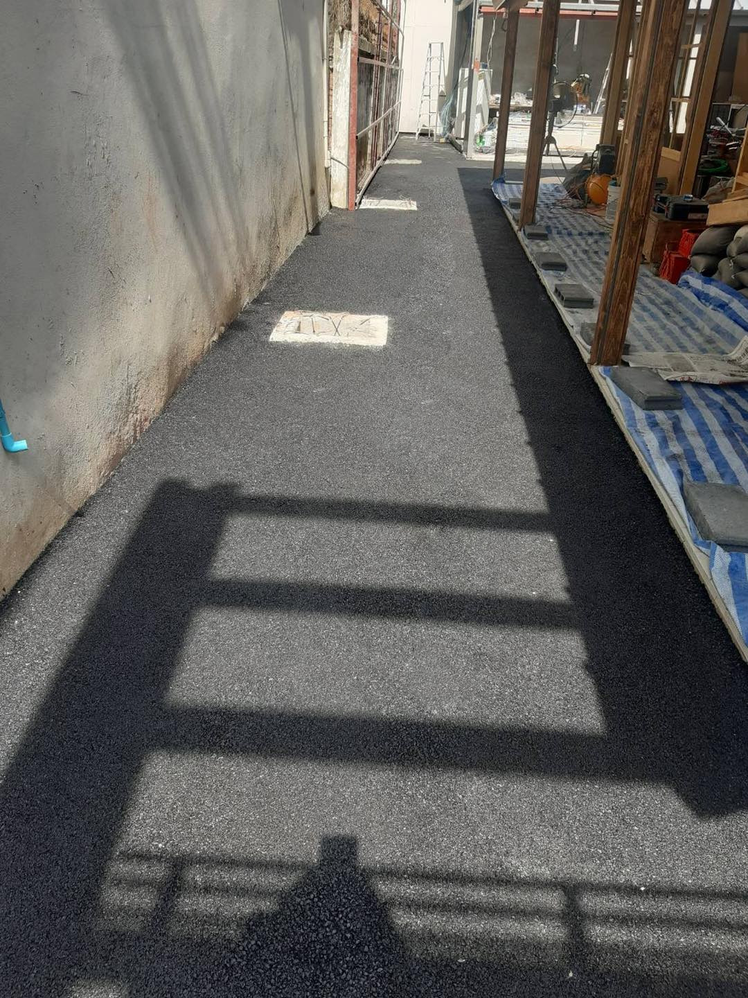 งานปูยางมะตอยพื้นผิวทางเดิน เพื่อยกระดับทัศนียภาพของร้านอาหารญี่ปุ่นย่านธุรกิจใจกลางสาทร โดยเน้นความประณีตให้เข้ากับสถาปัตยกรรมสไตล์โมเดิร์นเจแปนนิส